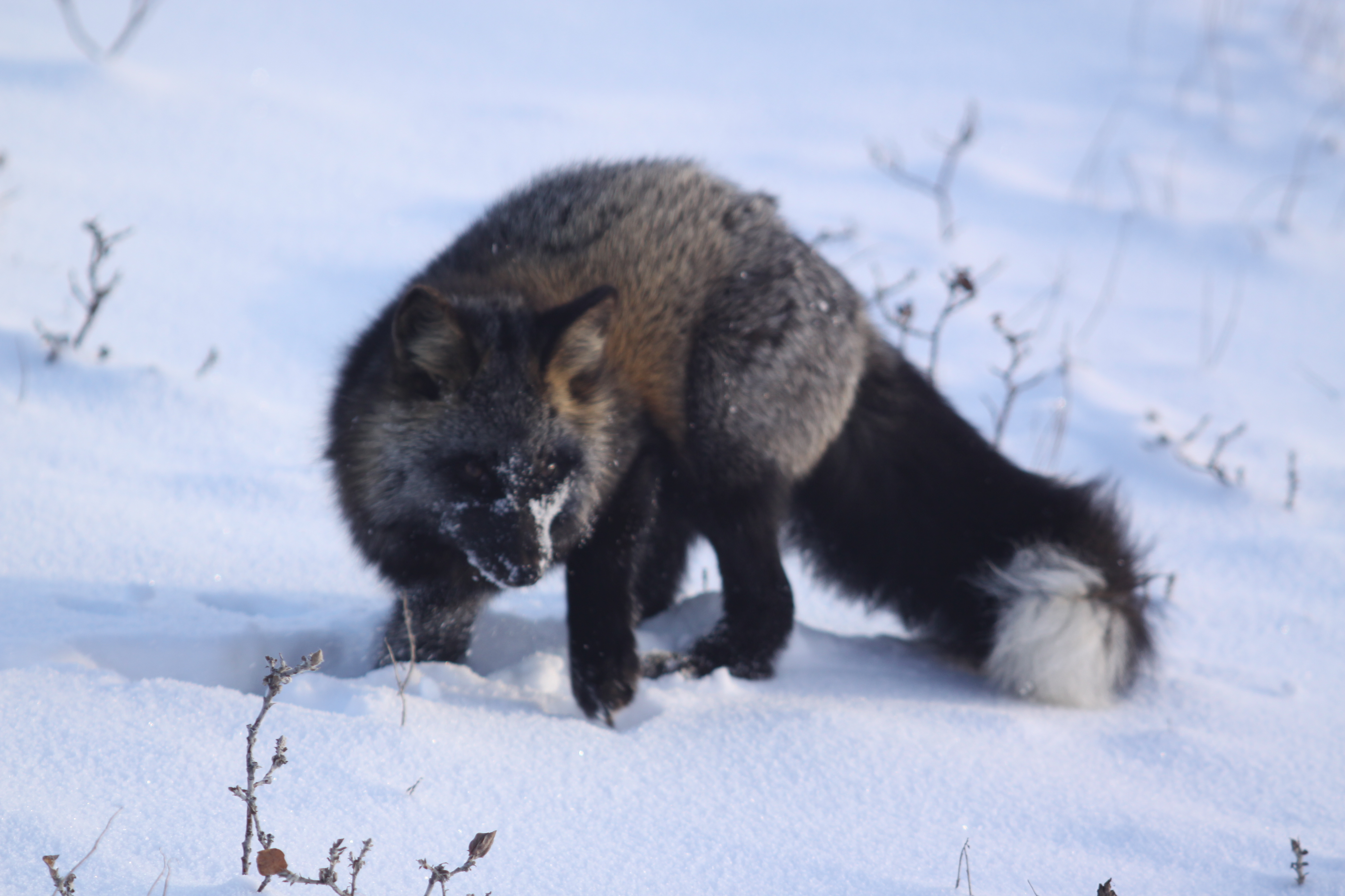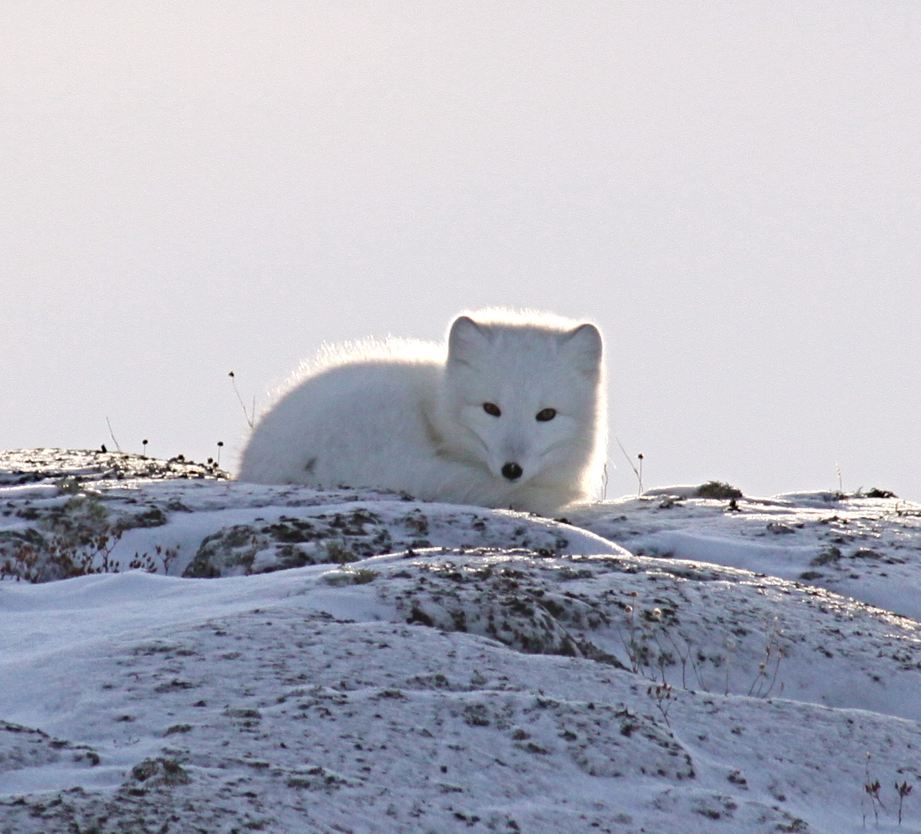 We saw a few bears today, including another that walked right up to the window of our bus. The bear got so close that we were instructed to close our windows. After some bear observations, we pulled off the side of the road to build an igloo. Chuck instructed us about how to cut and stack the ice to create the igloo structure. Once built, we took turns crawling inside the igloo to get a sense of the warmth and cover it offered from the elements. Chuck told a story about an igloo he built a couple years ago. He said that it was so cold and stormy out that as soon as he completed the igloo an Arctic fox darted inside and curled up.