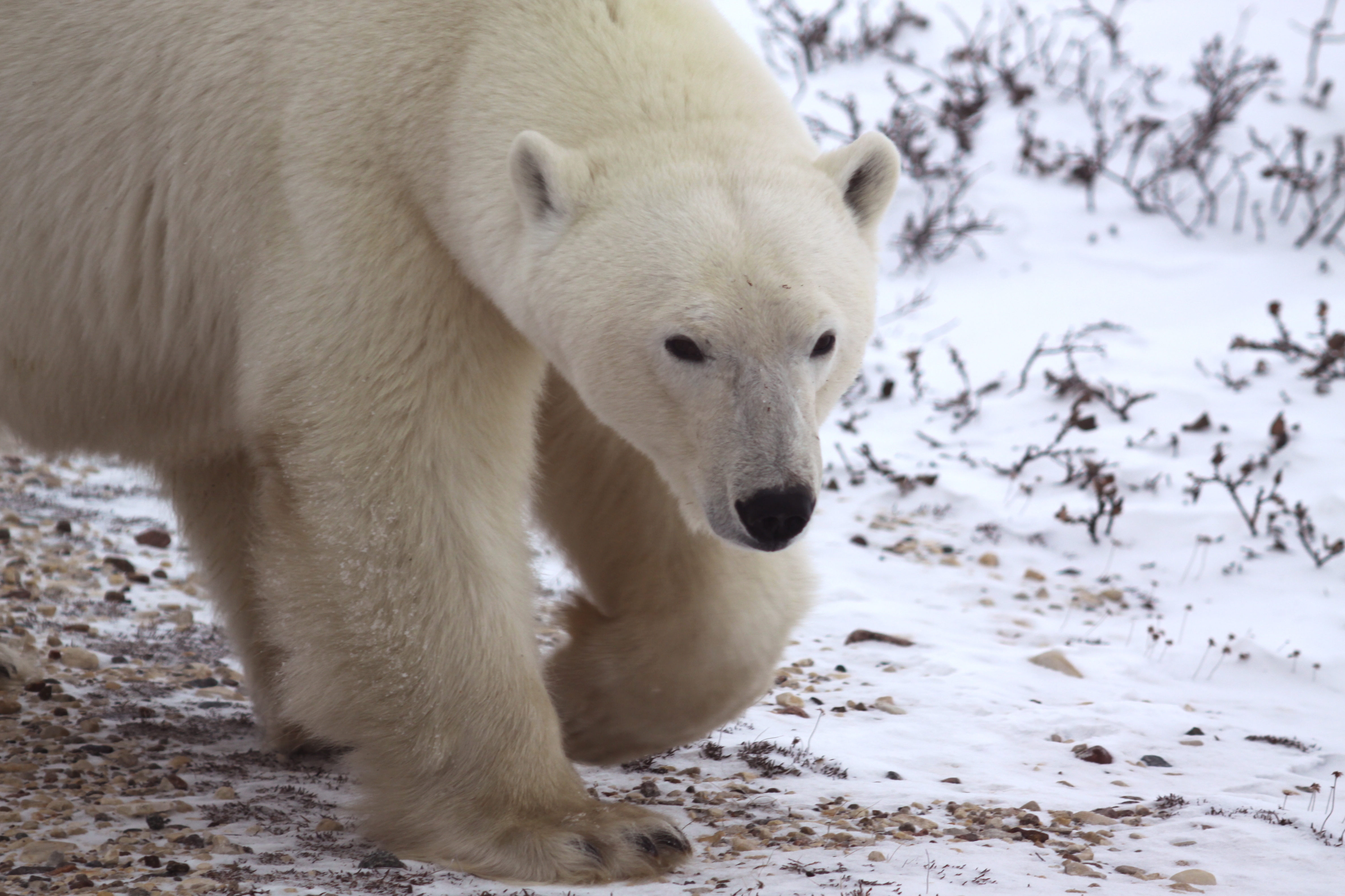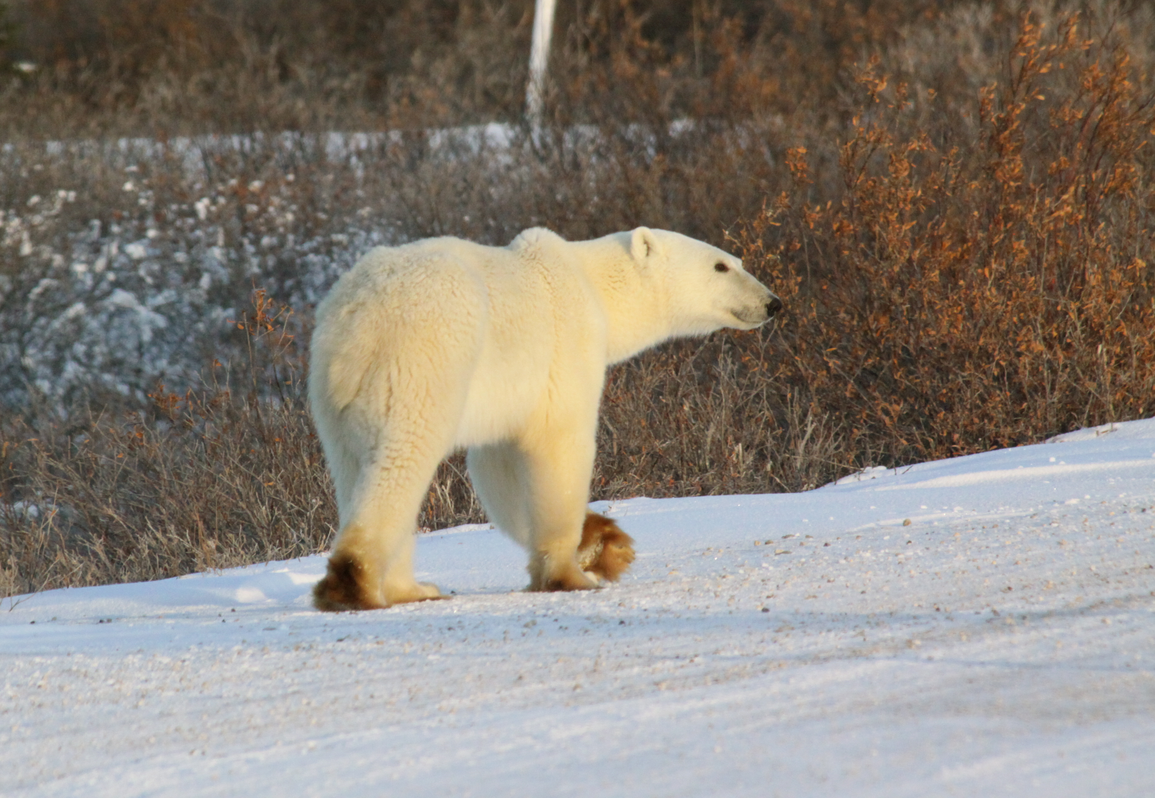 On the flip-side, it could be argued that studying the bears is a necessary means to help sustain their population. And I know from personal experience that my encounters with polar bears have sparked positive lifestyle changes in those I’ve shared stories with and those whom have read my blog. I certainly intend to make this annual journey for as long as the trip is offered and the bears are in existence. At the same time, I’d love to see some additional regulations implemented by the town of Churchill. Perhaps they could institute limited visitor permits, impose a tax on tour operators to accrue more funds to help study and sustain the bear population in the area, fine and prosecute those who bait bears for personal gain and profit . . .