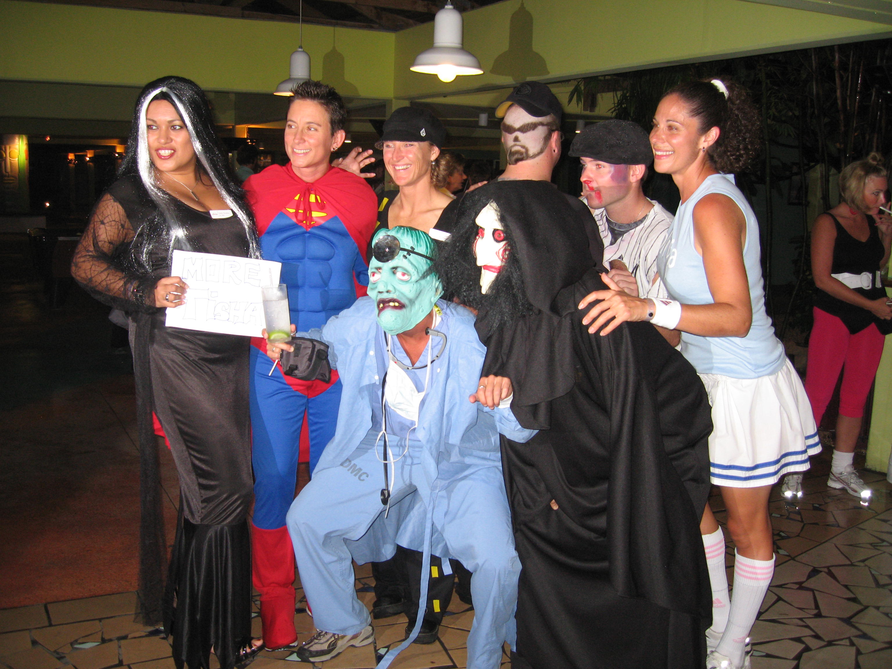 Lucky for all of us I have a short attention span so recaps of other days will be much more concise than the one above. Friday was Halloween and it POURED all day. The rain provided a nice “pause” from running around from activity to activity and allowed time to actually sit and connect with people. Friday night was the Halloween ball and almost everybody dressed up. Once again, after everybody else went to bed, Jen, Kurty, Cassie and I went to another party. We headed to Nikki Beach, a beautiful resort and danced with more costumed freaks until the wee hours. We made it back to our hotel just before the hardest rains hit. We walked our friends to their room, shielding ourselves with a pool umbrella large enough to provide cover for 5 people during a hurricane. Shortly after we crawled into bed we were awoken by housekeeping.